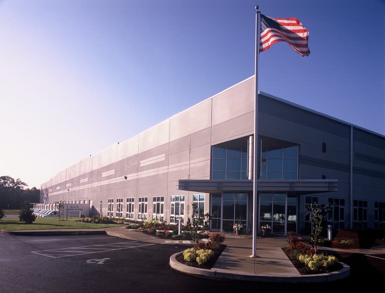 This one-story facility designed for Appalachian Insulation Supply consists of a structural steel frame with tilt-up concrete exterior walls and painted reveals. A total of 24 dock doors flank the north and west walls. The northwest corner of the facility features a canopy entrance, with 8,000-square-feet of office and showroom space.
