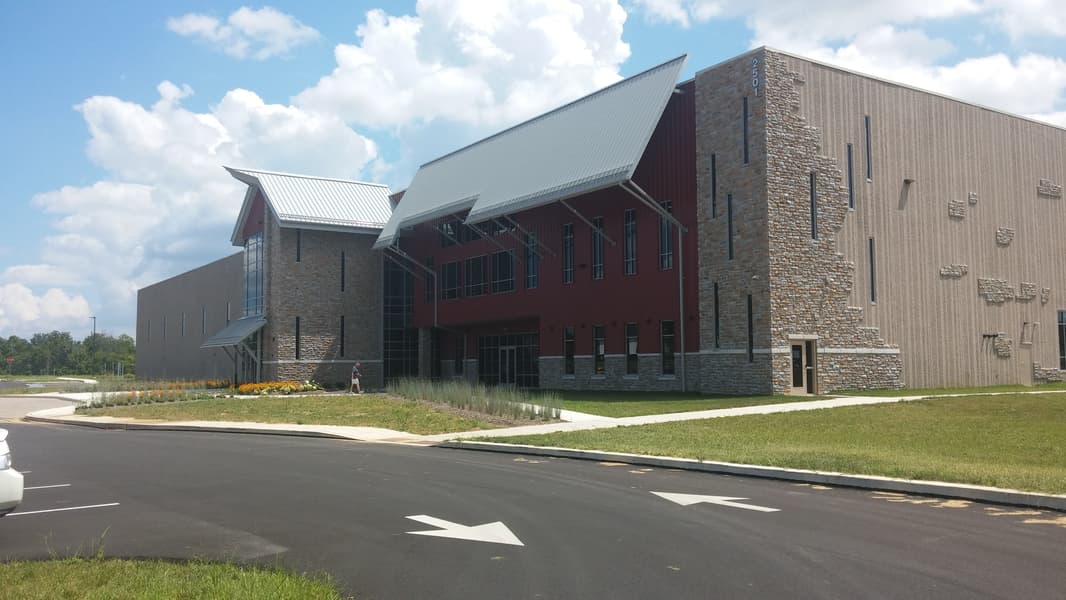 Quality Bicycle Products (QBP) of Minnesota determined that they required a permanent home for their fourth facility, and decided on Lancaster County to be the home of ‘Q-East’. Greenfield Architects designed this distribution facility to be located on the site of Lime Springs Farms, East Hempfield Township, Lancaster County, Pennsylvania. The 121,000 sf facility includes a 10,000 sf office and 10,000 sf mezzanines. The entrance/office component projects from the body of the building with a striking barn-like imagery compared to rest of the concrete panel façade. The transition is made between these volumes by extending the metal siding, roof and stone veneer from the office to the warehouse’ concrete panels. Inside, The program inside includes men’s and women’s locker rooms, side door access for cyclist employees, large lunchroom, training room, small conference rooms, and open office space. The mezzanine contains open office, large conference room and toilet rooms; access is provided from the first floor via a monumental stair and passenger elevator. The distribution center contains a dozen inbound and outbound docks, high-bay and lower high-piled rack storage, a packing area and a conveyance system (by an outside consultant to the owner). The interior is well lit by skylights and high clerestory windows. The building uses an early-suppression, fast-response sprinkler system with a fire pump. The bulk of the employee and guest parking are on the front north side of the building. The site will have ample truck access and parking and two detention basins and a rain garden for water quality management. The building is designed for a future 80k sf. expansion to the east. This will increase the hi-bay racking area that comprises a third of the building.